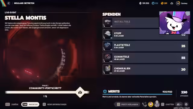 00:00:00Der Streamer "zombey" startet den Livestream zu Arc Raiders, begleitet von anfänglichen technischen Schwierigkeiten mit seinem PC und den Monitoren, die flackern und streifen aufweisen. Er äußert die Möglichkeit, in der nächsten Woche einen neuen PC und Bildschirme organisieren zu müssen. Im Spiel wird ein neues Event angekündigt: Eine abgelegene Forschungszeitrichtung in den Bergen wurde entdeckt, die seltene Exodus-Technologien enthalten soll. Die Aufgabe der Spieler ist es, Materialien zu sammeln und gegen eine neue Währung namens Merits einzutauschen, um Zugangstunnel wiederherzustellen. Zombey spendet umgehend seine Materialien und erreicht schnell das Merit-Limit von 900, die in der nächsten Phase gegen Belohnungen eingetauscht werden können. Das Event ist ein größeres Infrastrukturprojekt namens Stellar Montes, bei dem alle Raider mitmachen sollen, um den Ausbau zu beschleunigen.
