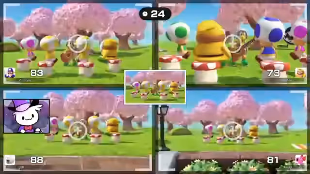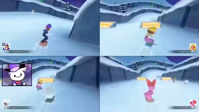 00:25:40Nachdem sich alle Streamer im Spiel lobby eingerichtet haben, beginnt die Partie von Mario Party. Es kommt zu technischen Schwierigkeiten mit den Joy-Controllern und der Verbindung. Die Spieler wählen ihre Charaktere – Mario, Waluigi, Wario und Toad. Die anfängliche Runde ist von leichter Unordnung geprägt, da sich die Spieler erst auf das Spiel und die Steuerung einstellen müssen. Die Map "Himmelsinsel" wird als Ziel ausgegeben und der Spielspaß steht im Vordergrund.