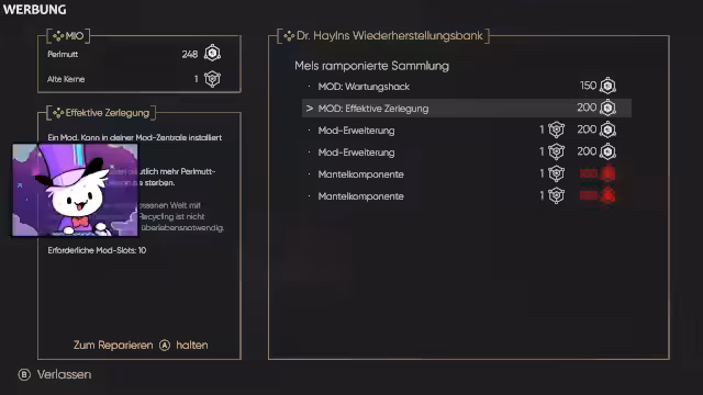 00:40:31Während der Exploration trifft der Spieler auf einen wichtigen Charakter, Mel, die Mio in eine alte Werkstatt begleitet. Dort kann sie sich durch gesammelte Perlmut-Upgrades verbessern und neue Mods installieren, die das Gameplay maßgeblich beeinflussen. Der Höhepunkt ist der erste Bosskampf gegen 'Aegis', eine mächtige Roboterwache, die den Spieler fordert. Nachdem der Streamer den Boss besiegt hat, erhält er durch Mel neue Fähigkeiten, darunter die wichtige Technik, sich an Kristallen und Gegnern hochzuziehen, was den Spielradius erheblich erweitert.