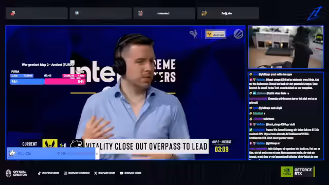 04:10:58Ein intensiver Start des Halbfinales zwischen Falcons und Spirit auf der Map Overpass. Der Kommentator analysiert das Spielgeschehen detailliert, insbesondere die strategischen Positionierungen und Aktionen von Spielern wie Apex und Kesselato. Vitale Momente werden hervorgehoben, wie das klare 3:0 für Vitality und die Reaktionen der brasilianischen Crowd. Die Atmosphäre beschreibt der Kommentator als extrem emotional und intensiv, besonders wenn Vitality Punkte macht und die Stille der Crowd fast greifbar wird.