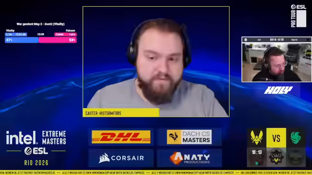 05:08:06In der Anfangsphase des Matchs wurden auf der Map Dust2 einige interessante Taktiken beobachtet. Die Falcons konnten Vitality einige Runden abnehmen, doch Vitality zeigte sich stark in der Halfbuy-Strategie. Besonders die Aufführungen von Apex und Robbs waren auffällig, dabei konnten sie durch kluges Positionsspiel und präzises Zielen mehrere Runden für ihr Team sichern. Kommentatoren hoben die herausragende Leistung von Apex hervor, der wiederholt durch genaue Schüsse in entscheidenden Situationen glänzen konnte.