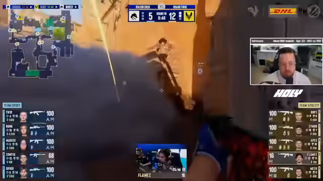 05:53:21Im weiteren Verlauf des Spiels gibt es mehrere kritische Situationen, die den Auszug der Partie bestimmen können. Vitality zeigt beeindruckende Comeback-Runden, während Spirit versucht, die Führung zu halten. Der Kommentator äußert sich emotional über einzelne Spielzüge und betont die enorme Bedeutung jeder Runde für das Endergebnis. Er beschreibt auch die physische und mentale Belastung der Spieler in diesen hochspannenden Momenten und wie wichtig es ist, unter Druck ruhig zu bleiben und klare Entscheidungen zu treffen.